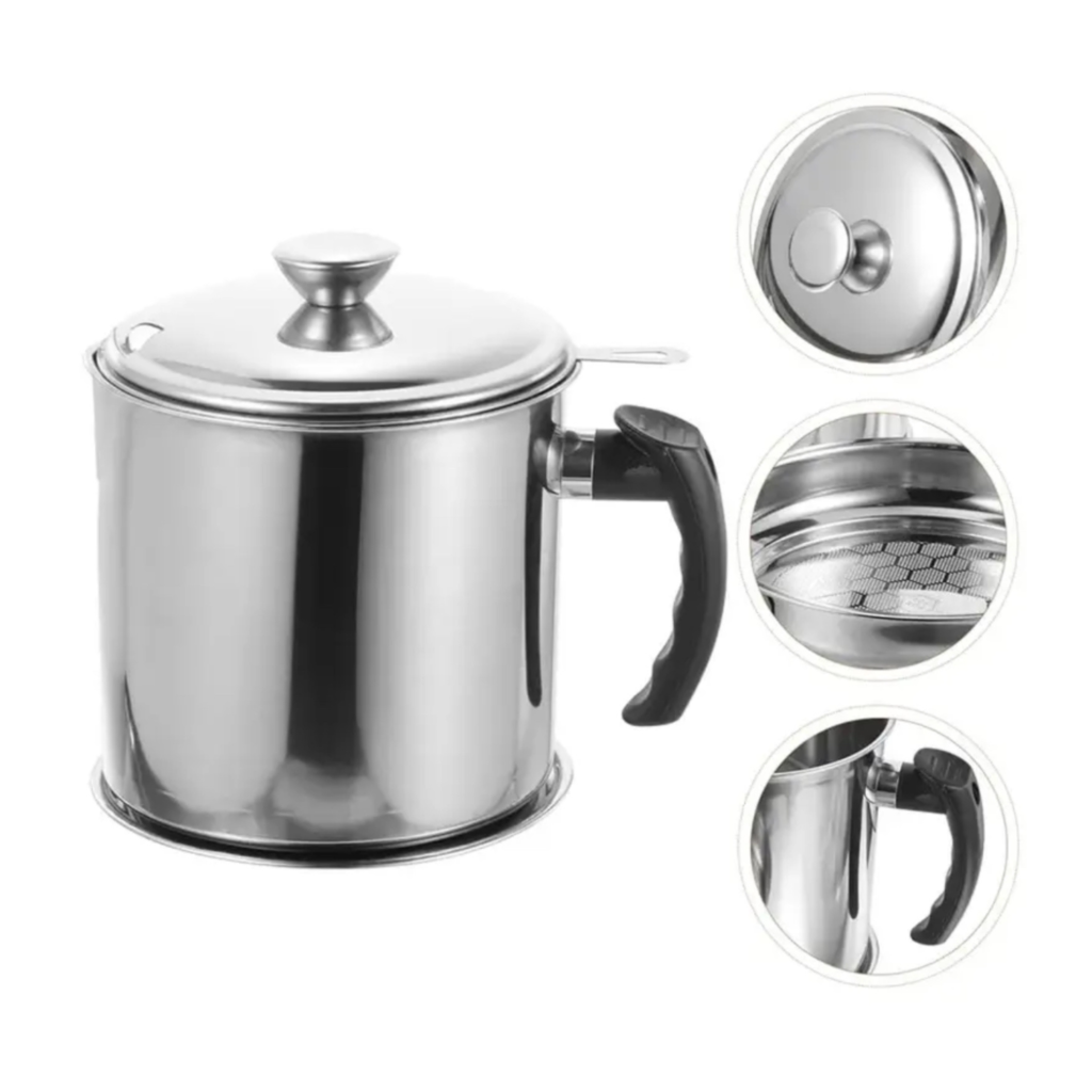 Stainless Steel Oil Filter Pot – Grease Container with Strainer Lid