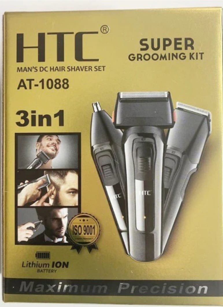 HTC AT-1088 Multi-functional Rechargeable hair Grooming Kit Hair Clipper Shaver Nose 3 in 1 Hair trimmer
