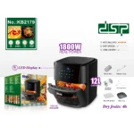 The DSP KA2179 Digital Air Fryer Oven with Rotisserie is a versatile kitchen appliance designed to provide healthier cooking options by using minimal to no oil. It combines the functionalities of an air fryer and an oven, featuring a spacious 12-liter capacity and a powerful 1700W motor.