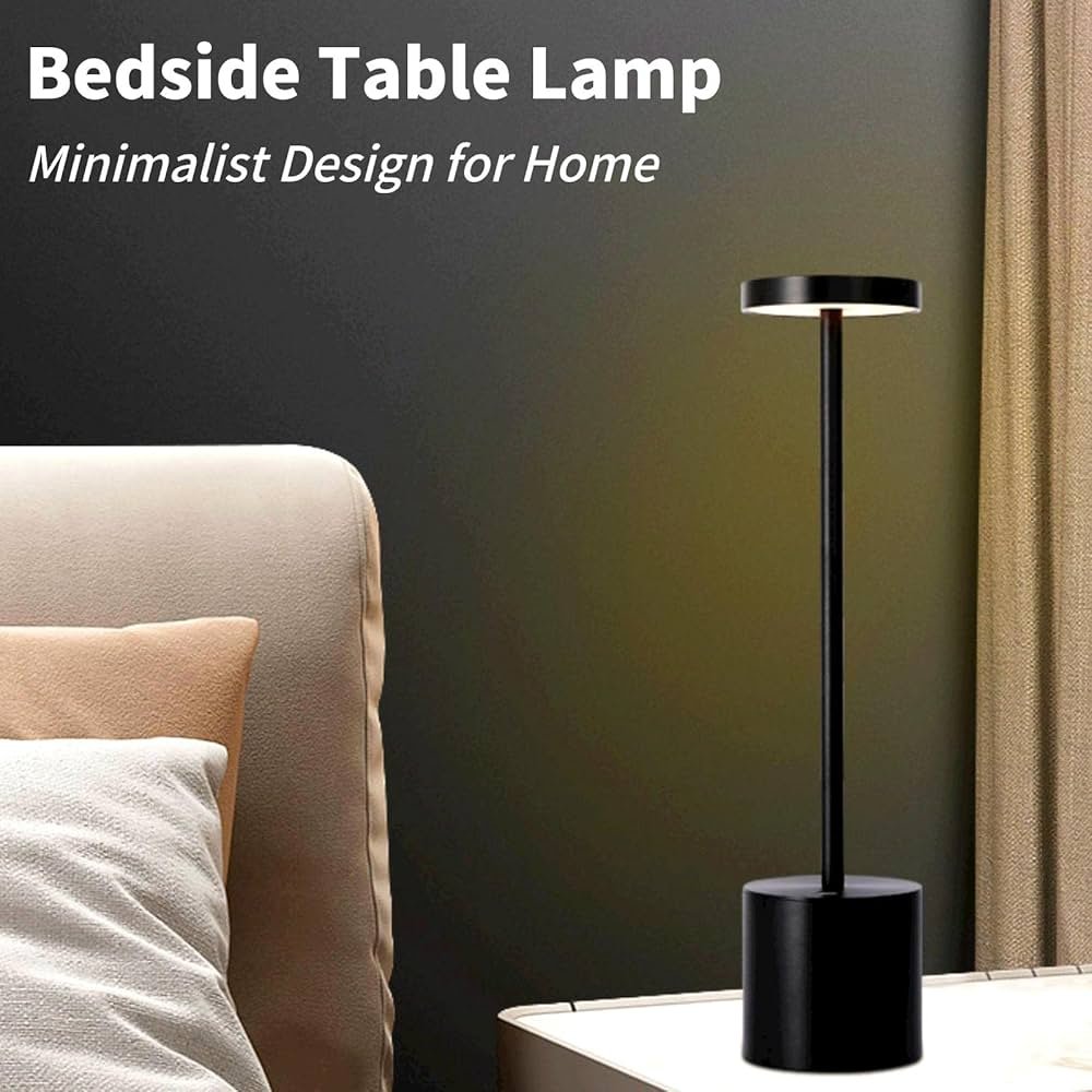 Rechargeable Touch Control LED Bedside Table Lamp – Portable Battery Operated Desk Lamp with 3 Brightness Levels (Black)