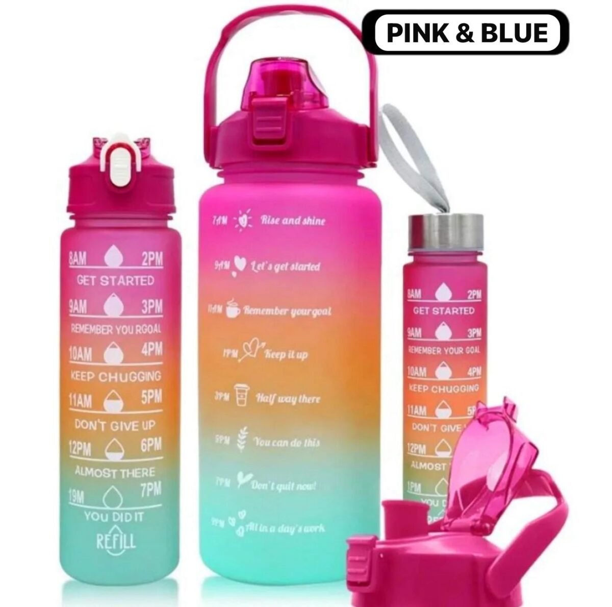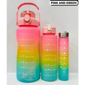 This 3-piece plastic water bottle set is designed for convenience, durability, and style. Made from high-quality, BPA-free plastic, these bottles are safe for daily use and ideal for home, office, gym, or outdoor activities. Each bottle comes in a vibrant color, making them easy to identify and perfect for sharing with family members. With a leak-proof cap and lightweight design, they are easy to carry in bags or backpacks. Stay hydrated in style with this practical and reusable water bottle set.