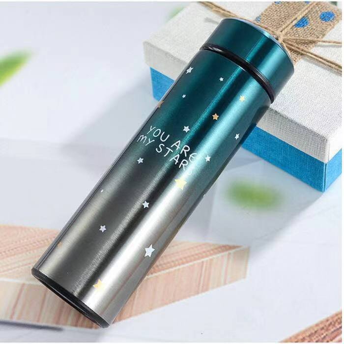 Star Print Temperature Vacuum Insulated Thermos Water Bottle With Led Display Stainless Steel
