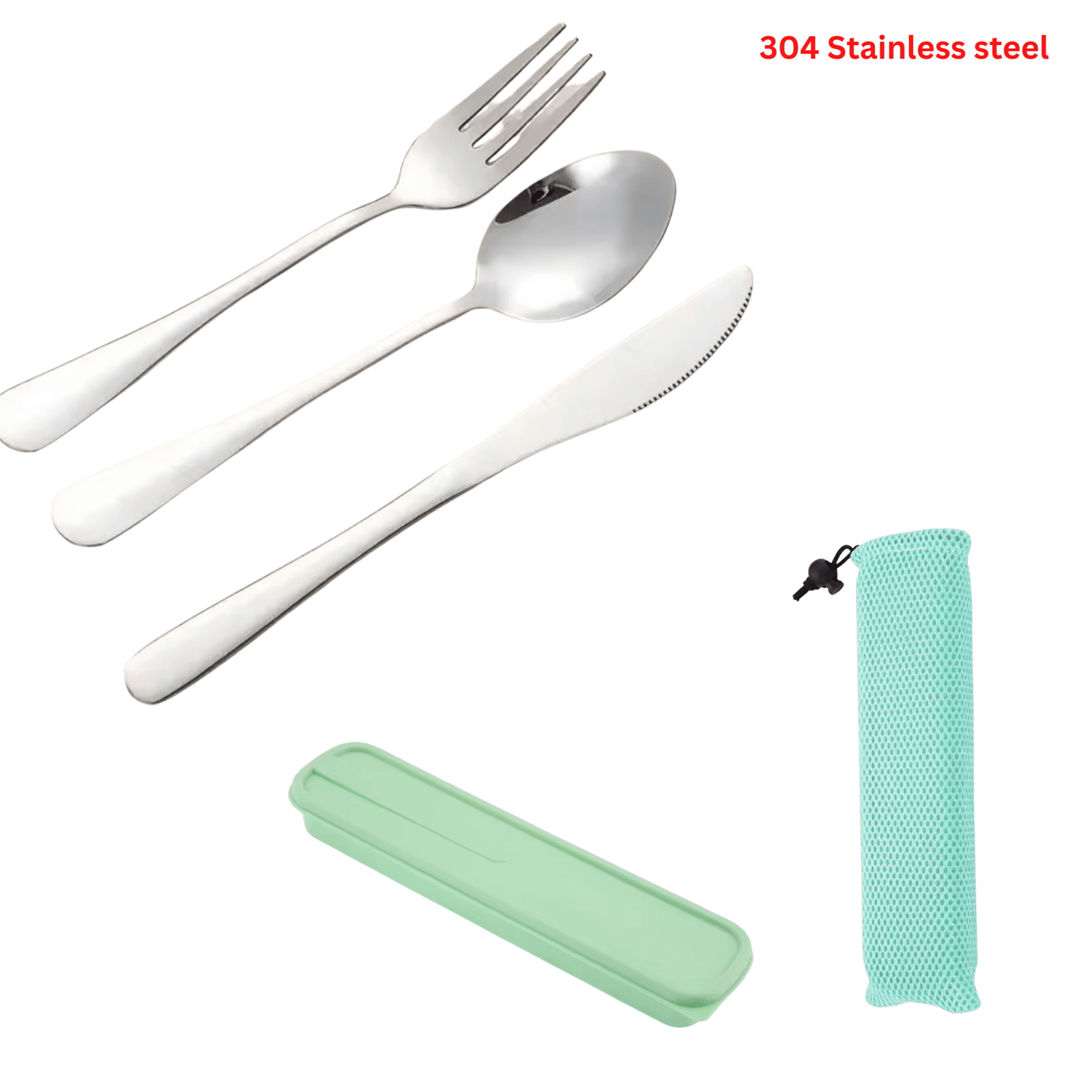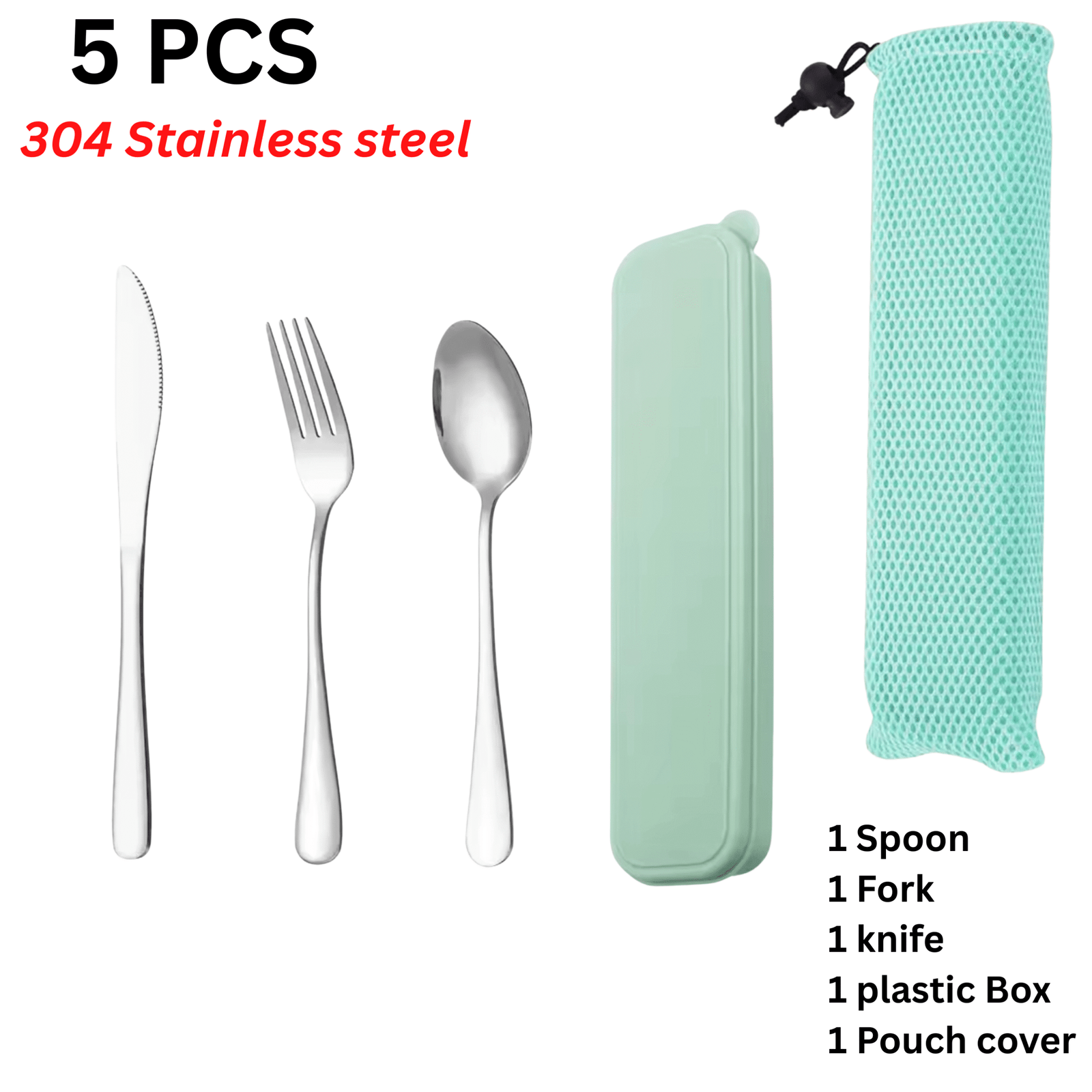 5PCS 304 Stainless Steel Spoon Fork Knife With Pouch