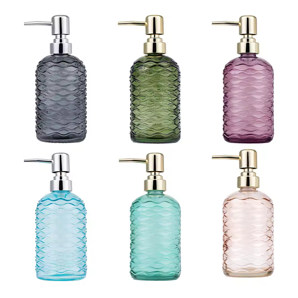 Premium Colored Glass Pump Dispenser Bottle for Lotion, Soap & Sanitizer