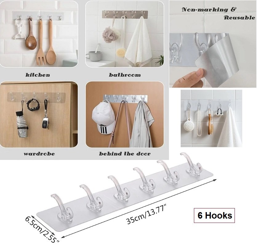 Wall Hanger 6 Hooks Adhesive Wall Hooks for Hanging Clothes