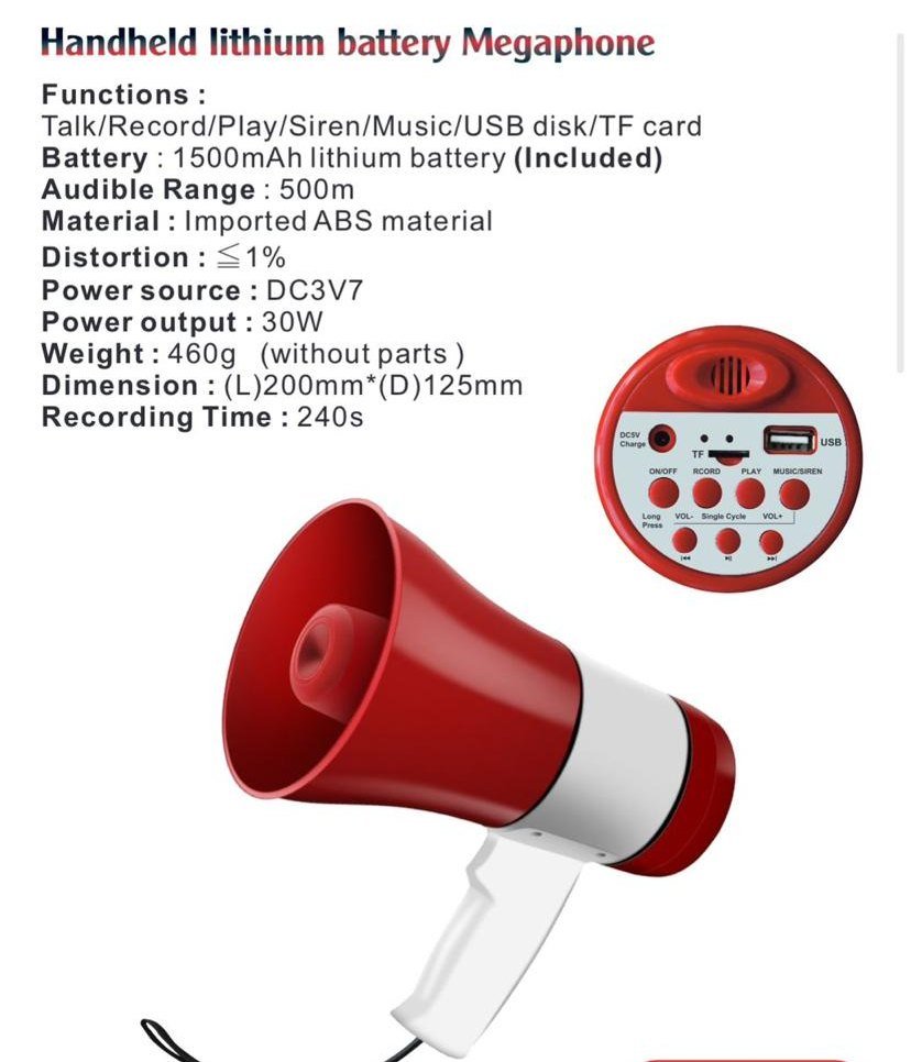 Handheld Lithium Battery Megaphone Handy Mic Megaphone 619U with Record Siren USB TF Card Smart Gallery
