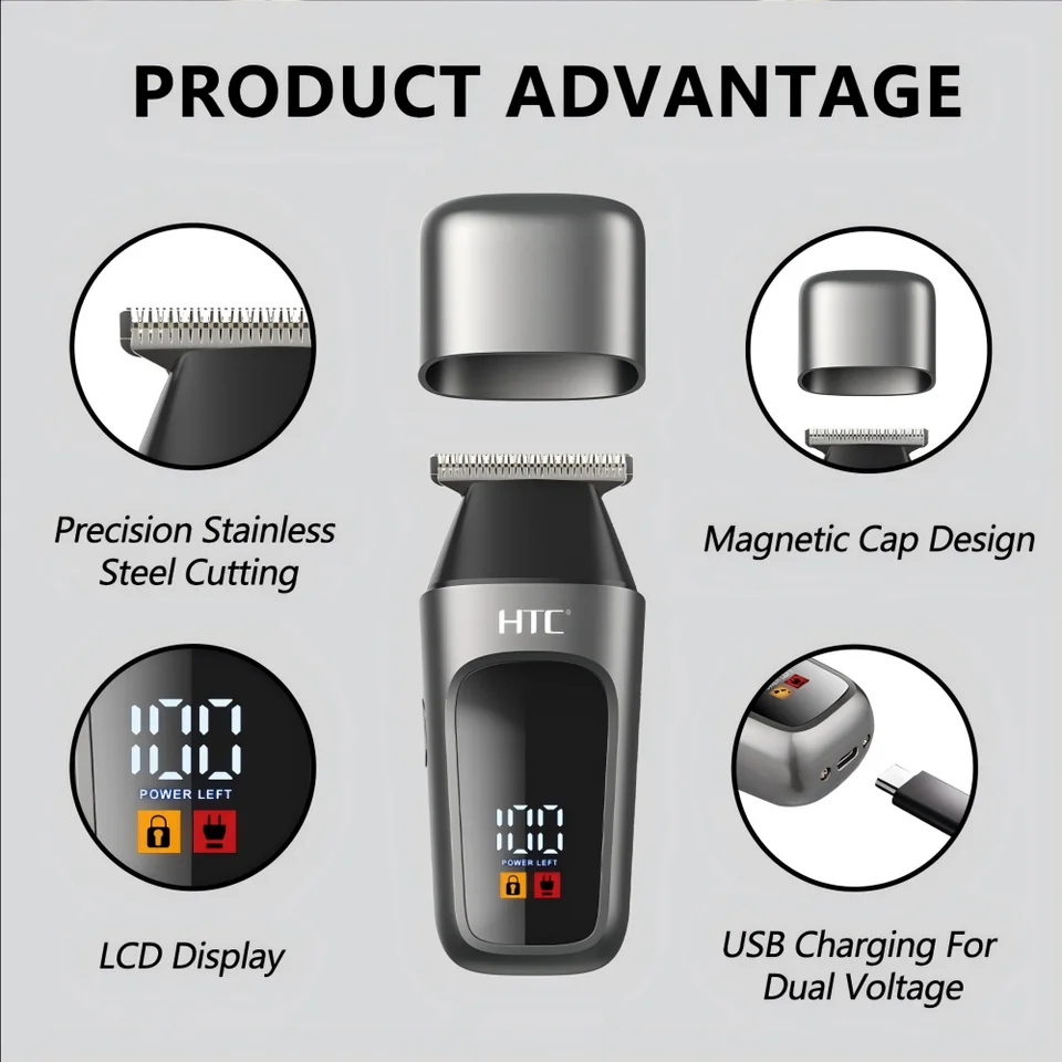 HTC AT 119 3 Seconds Travel Lock T-Blade Trimmer for Men Type-C Charging Small Powerful Hair Trimmer